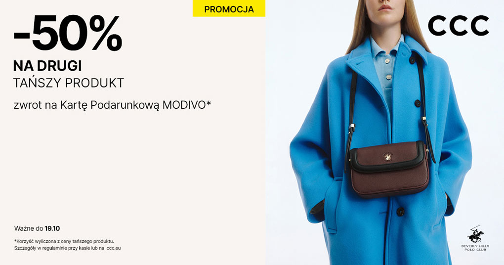 Czas na zakupy tańsze nawet o 50%? Da się zrobić! Wybierz dwa produkty, a 50% wartości tańszego z nich wróci na Twoją Kartę Podarunkową MODIVO! Skorzystaj z okazji i wybierz ulubione marki, wygodne obuwie lub stylowe torebki oraz akcesoria! Szczegóły oferty w regulaminie.