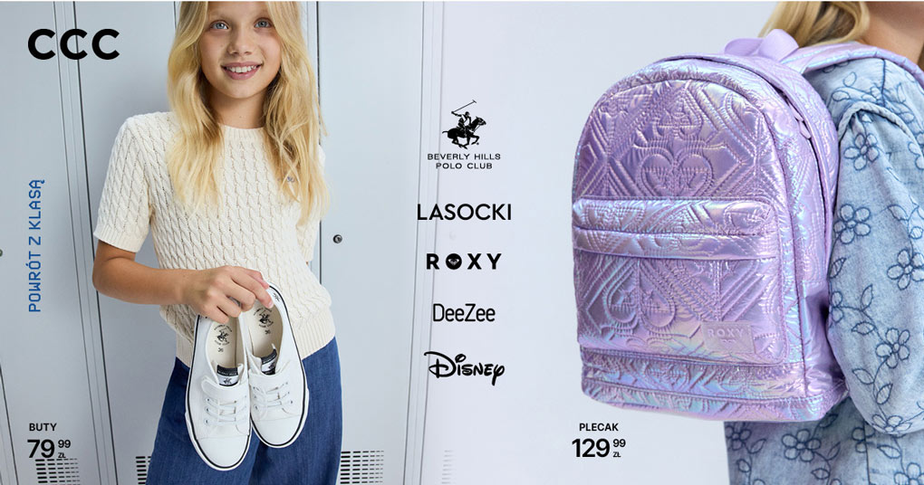 W CCC czeka nowa kolekcja, która sprawi, że rozpoczęcie roku szkolnego będzie prawdziwą przyjemnością. Przygotowaliśmy bogatą ofertę od znanych marek, takich jak LASOCKI, Beverly Hills Polo Club, Disney czy ROXY, które idealnie łączą funkcjonalność z najnowszymi trendami. Stylowe buty, pojemne plecaki i praktyczne dodatki – w CCC znajdziesz wszystkie elementy, które pozwolą Twojemu dziecku wyrazić siebie i powitać nowy rok szkolny w wyjątkowym stylu.