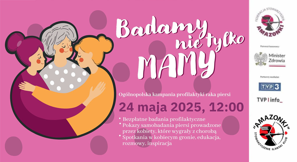 Ponadto zapraszamy o godz. 12:00 na stoisko stowarzyszenia Iławskie Amazonki na spotkanie profilaktyczno-edukacyjne z okazji Dnia Matki.