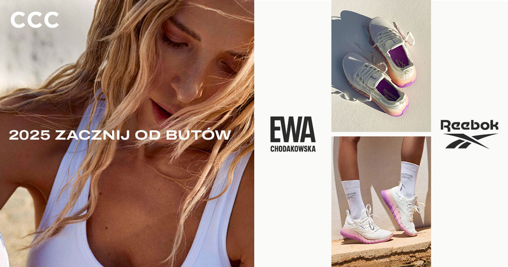 W nowym roku czas na nowe wyzwania! Wybierz sportowe modele marki Reebok polecane przez Ewę Chodakowską – idealne na trening, jogging czy szybki spacer. Szukaj ich w salonach CCC, aplikacji i na ccc.eu. Zróbpierwszy krok w stronę swoich celów!